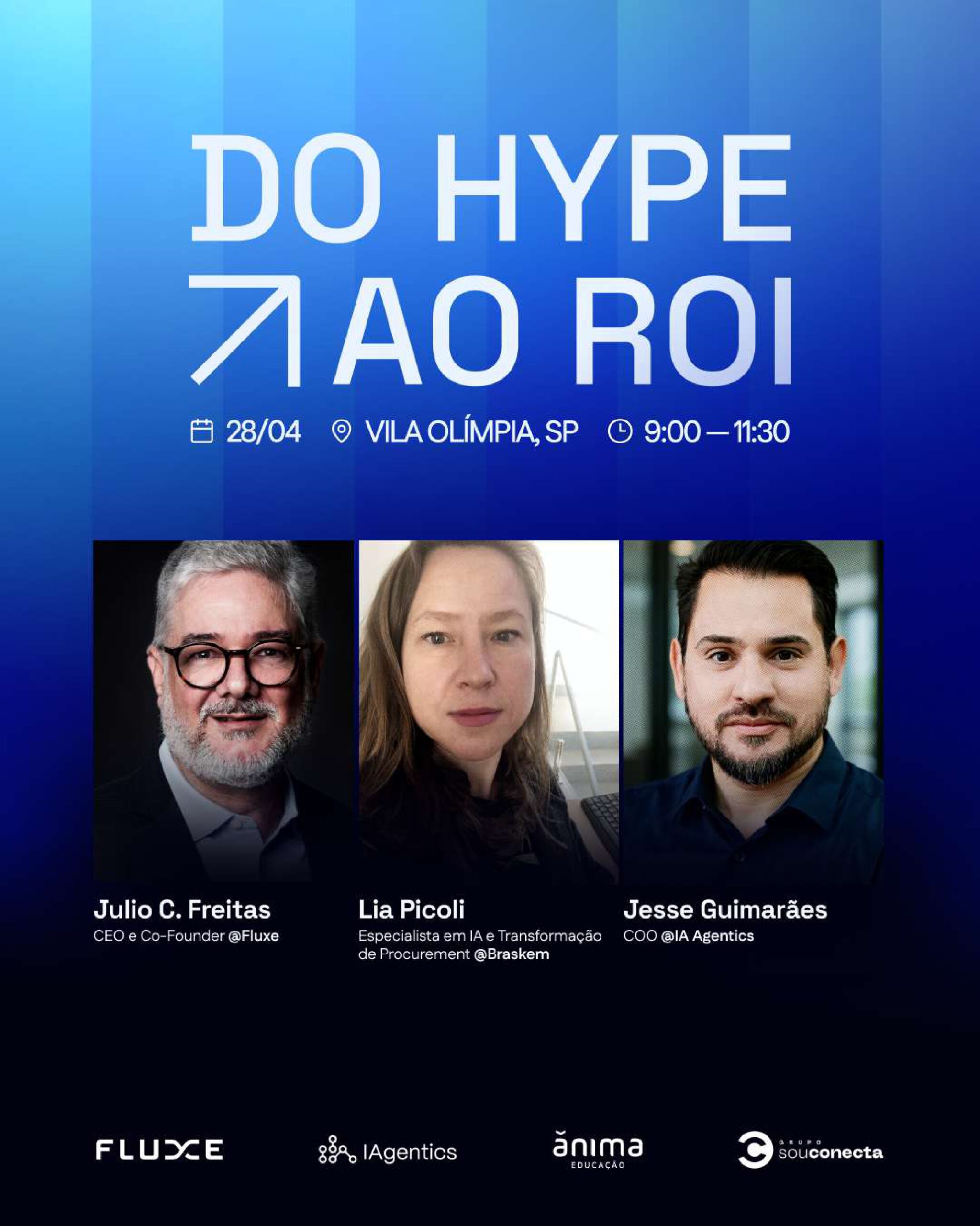 Fluxe debate retorno sobre investimento em IA na Anhembi Morumbi, em São Paulo abril 8, 2026Evento é realizado em parceria com IAgentics, Ânima e Sou Conecta;...