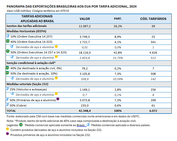 A última ordem executiva americana retirou 84 produtos da lista de isenções estabelecida em abril. Desses, 76 são produtos de cobre, já abrangidos pela Seção 232.