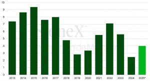 Até julho, as exportações tailandesas de mandioca e derivados já somavam 4,9 milhões de toneladas, volume praticamente equivalente ao de 2024 (5,2 milhões). A expectativa é de que a recuperação se mantenha até 2026, criando um novo cenário de competição com a cana.