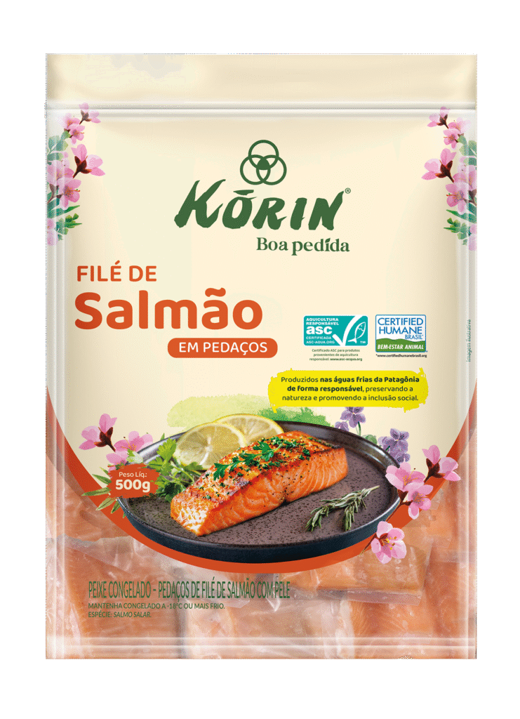 A Korin Alimentos oferece aos consumidores o primeiro salmão com certificação em bem-estar animal do Brasil. A empresa, que é pioneira na criação de frangos sem o uso de grãos transgênicos, anticoccidianos e antibióticos no país, fortalece seu portfólio com mais uma opção de alimento saudável. O produto chega ao mercado em duas versões: salmão defumado e salmão em postas.