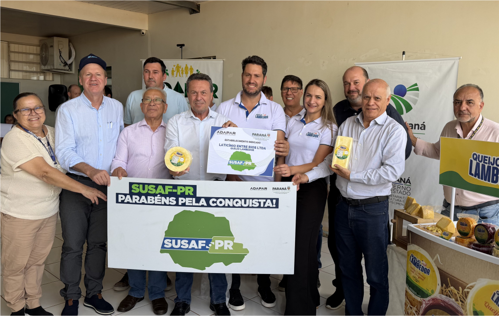 Logo na sequência, houve a solenidade da entrega da certificação SUSAF para a agroindústria Laticínio Entre Rios (Queijo Lambedor), de Verê, reconhecendo o cumprimento integral dos padrões sanitários exigidos pela Adapar e o compromisso com a qualidade e segurança alimentar. A Entre Rios fabrica queijos e derivados lácteos. É uma empresa familiar de pequeno porte, com 25 anos de fundação, e reconhecida regionalmente pela qualidade e procedência de seus produtos. Tem forte identidade local e mantém vínculos diretos com produtores de leite da região.