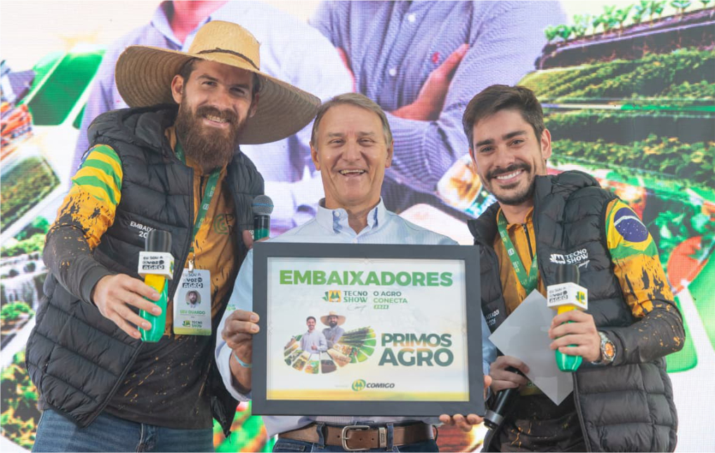 Após a revelação do conceito, foram apresentados os influenciadores João Castro e Eduardo Palhares, conhecidos como Primos Agro, como embaixadores oficiais da Tecnoshow 2026, ampliando a estratégia de diálogo com o público. Engenheiros agrônomos e produtores rurais, eles levam para as redes sociais informação de qualidade sobre gestão, produtividade e rotina no agro, aproximando o conhecimento técnico da realidade de quem consome e se interessa pelo setor.