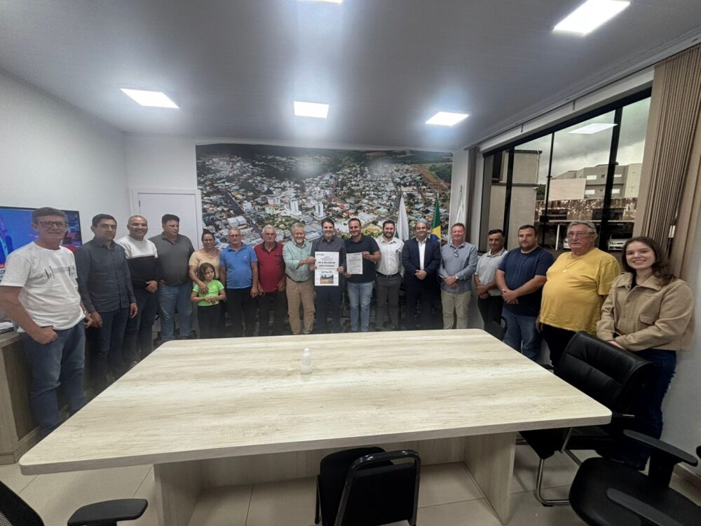 Foi realizada na manhã desta segunda-feira, 17 de novembro, no gabinete do Prefeito Anderson Barreto, a assinatura da ordem de serviço para a implantação de massa asfáltica na estrada que liga a rodovia Mário Ceni PR-158 à Linha Giordani e também ao Recanto das Cachoeiras.