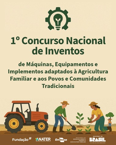 O Ministério do Desenvolvimento Agrário e Agricultura Familiar (MDA), a Embrapa e a a Agência Nacional de Assistência Técnica e Extensão Rural (Anater), com o apoio da Fundação Banco do Brasil (FBB), estão promovendo o 1º Concurso Nacional de Inventos de Máquinas, Equipamentos e Implementos Adaptados à Realidade da Agricultura Familiar e de Povos e Comunidades Tradicionais. A iniciativa busca “reconhecer e dar visibilidade a máquinas, equipamentos e implementos que fazem a diferença, respeitando a realidade e as necessidades dos agricultores/as familiares e dos povos e comunidades tradicionais.”