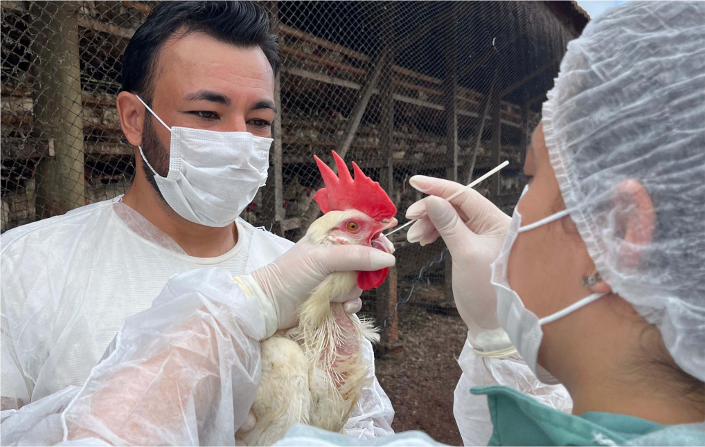 A Influenza Aviária é uma doença viral altamente contagiosa que afeta aves domésticas e silvestres, podendo gerar sérios impactos sanitários, econômicos e ambientais. A forma de alta patogenicidade caracteriza-se por elevada mortalidade, associada a sinais clínicos respiratórios, digestivos e nervosos, como dificuldade respiratória, diarreia, torcicolo e incoordenação motora.