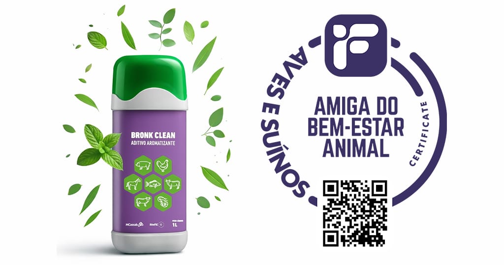 A MCassab Nutrição e Saúde Animal recebeu o selo Amigo do Bem-Estar Animal, concedido pela Fair Food, uma das mais relevantes organizações dedicadas à promoção de sistemas produtivos alinhados às boas práticas de bem-estar animal. A certificação reconhece o produto Bronk Clean como uma solução natural para aves e suínos que coloca os animais no centro das decisões produtivas, considerando aspectos como saúde, conforto, comportamento natural e redução do estresse.
