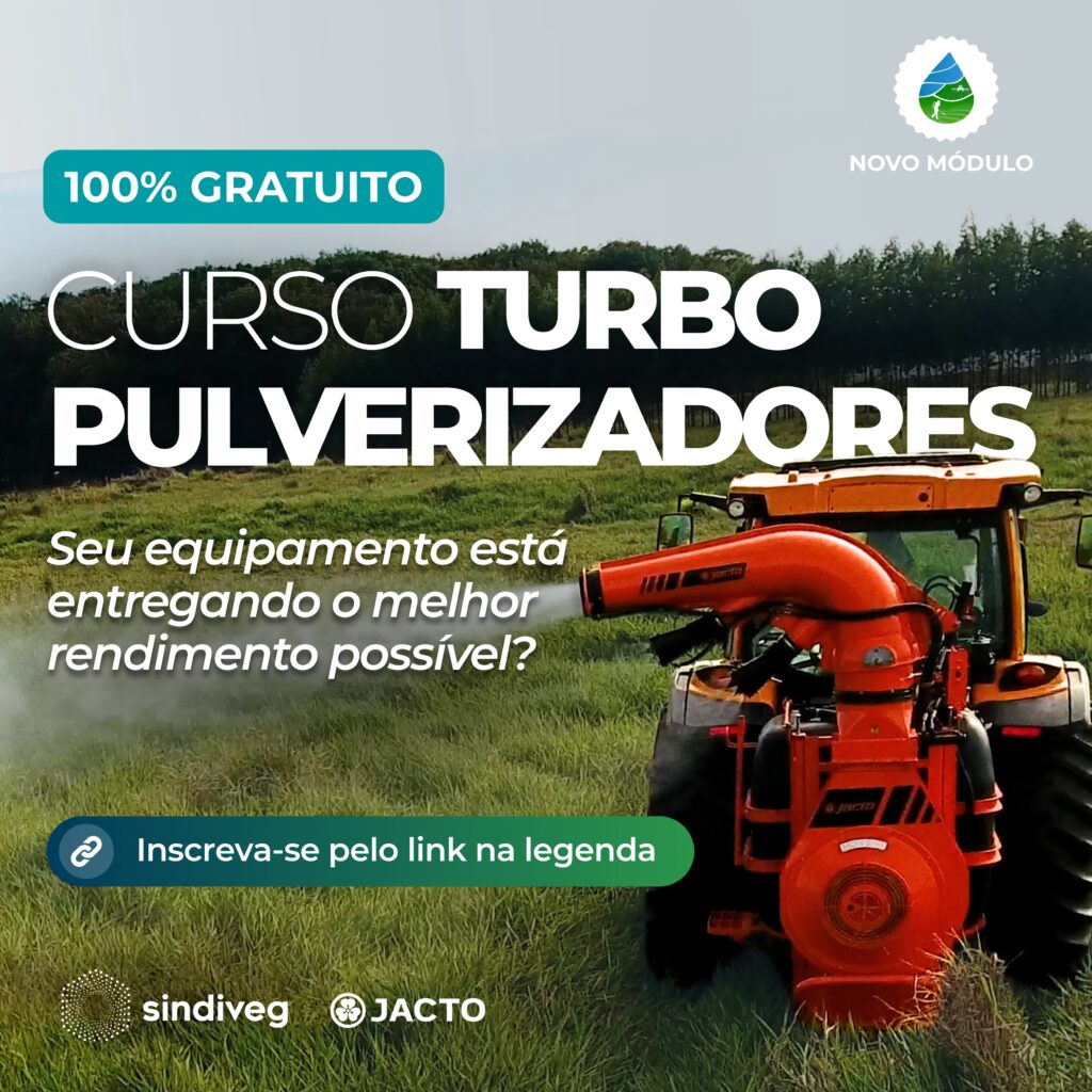 A iniciativa integra o programa Aplicador Legal, instituído pelo Decreto nº 10.833/2021, e foi desenvolvida pelo Sindiveg em parceria com a CropLife Brasil. O curso reúne orientações sobre o uso e a regulagem de turbopulverizadores, com foco em apoiar a rotina de profissionais que atuam na aplicação no campo.