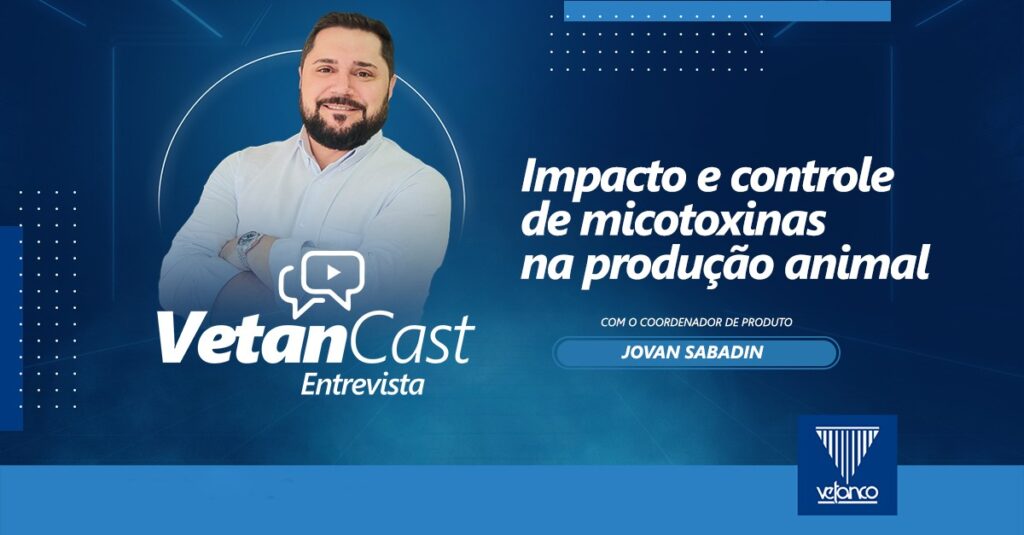 A presença de micotoxinas continua sendo um dos principais desafios sanitários da produção animal, com impacto direto na saúde e no desempenho produtivo de aves e suíno. Esse é o tema do VetanCast, podcast produzido pela Vetanco, já disponível no YouTube e no Spotify. Neste episódio, a coordenadora de marketing Victoria Domingues entrevista o coordenador de produtos da empresa, Jovan Sabadin.