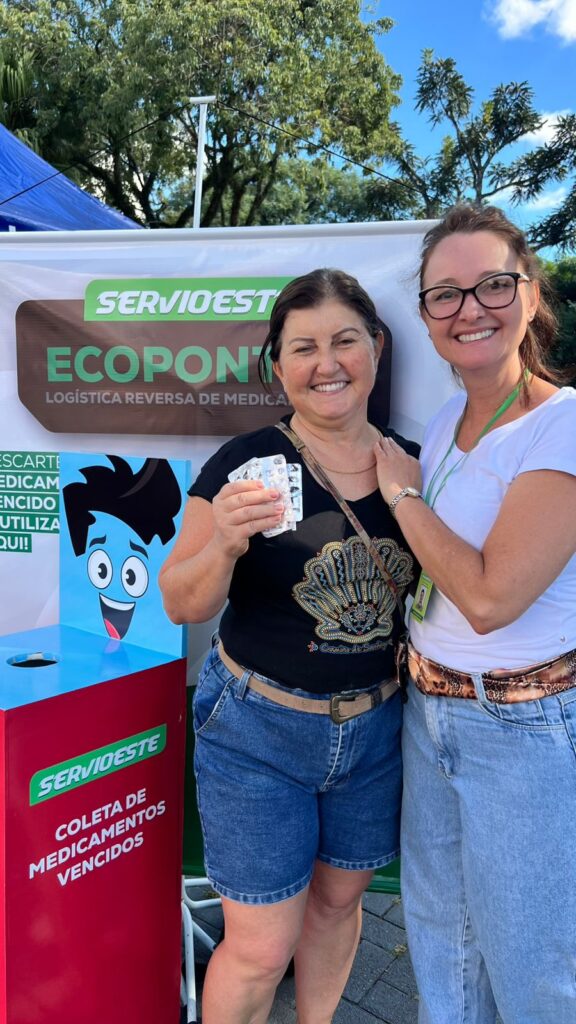 A iniciativa também contou com a participação de diversos membros da equipe da empresa, que estiveram presentes durante toda a ação orientando a população e incentivando práticas sustentáveis. Para Caetano Balbinot, integrante da Servioeste, o evento reforça o compromisso da empresa com a educação ambiental: “Foi um momento muito importante de contato com a comunidade, onde conseguimos conscientizar crianças e adultos sobre a destinação correta dos resíduos, principalmente dos medicamentos, que ainda são descartados de forma inadequada por muitas pessoas”, destacou.