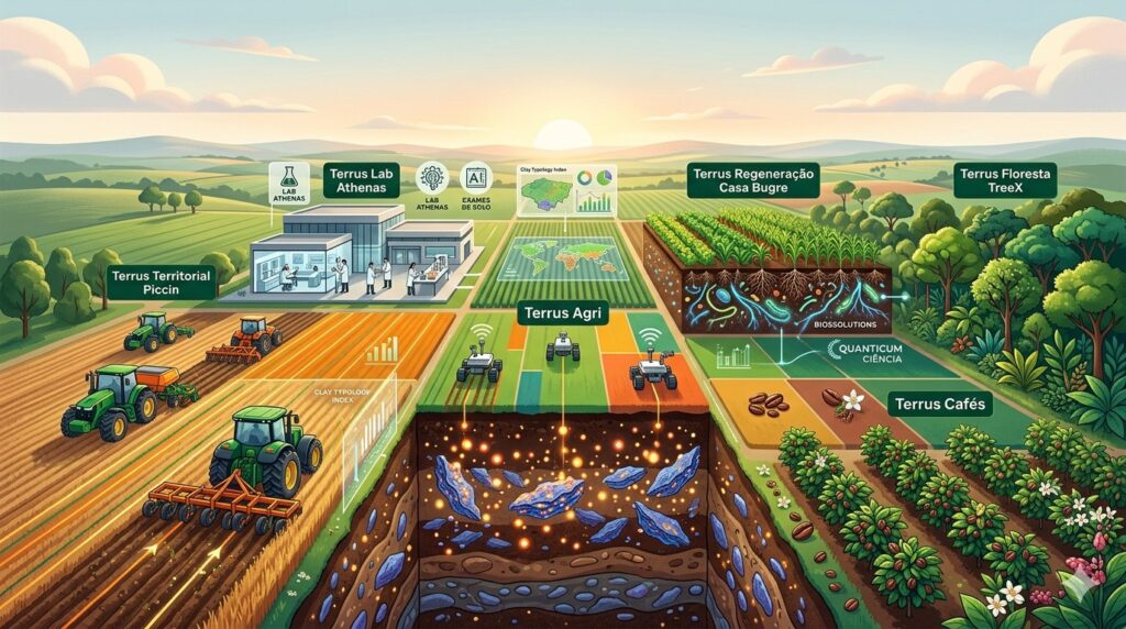 Frente a esse dilema, Siqueira propõe a solução revelada no livro, o Ecossistema Terrus Agri. “Aqui o Hospital da Terra é a metáfora e o método para resolver esses gargalos. É com a mesma seriedade que se trata a vida. Cada ala do hospital, uma Spinoff diferente, que propõe a sua solução para tantos gargalos de manejo do Fósforo”, diz. Dessa forma, cada ala fica responsável por uma via de tratamento específica sobre a tutela das seguintes empresas: Grupo Piccin, Grupo Casa Bugre, TreeX, Grupo Pollo, Borém Cafés e Laboratório Athenas. Todos com o acesso à mesma base científica da Quanticum, resolvendo os desafios de manejo de fósforo para solos e florestas.
