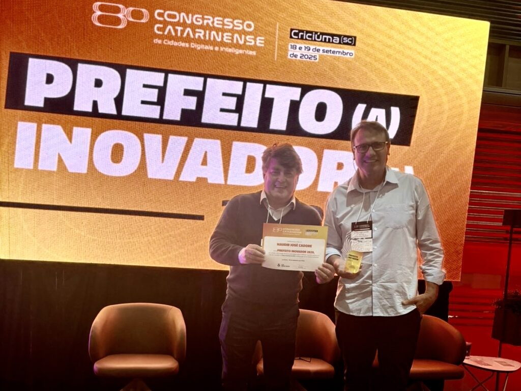O município de Novo Horizonte, representado pelo prefeito Naudir José Cadore e pelo vice-prefeito e também secretário da Saúde Rogério Acácio Mascarello, recebeu o título de Prefeito Inovador 2025 no 8º Congresso Catarinense de Cidades Digitais e Inteligentes, em Criciúma. A premiação, promovida pela Rede Cidade Digital, reconhece gestores e administrações que se destacam pelo uso da tecnologia e inovação […]